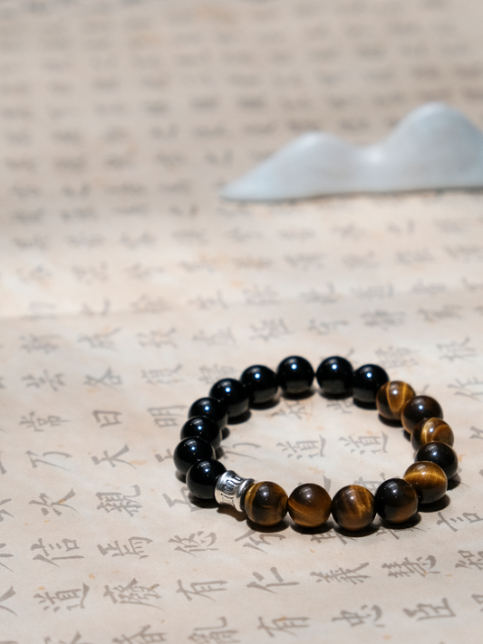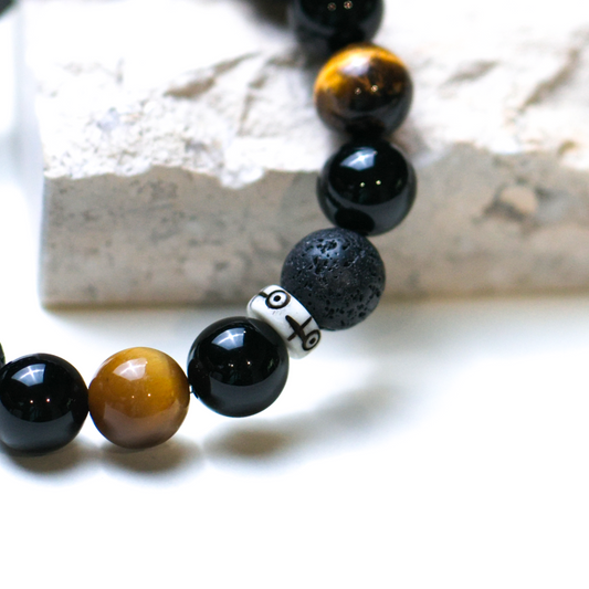 Volcanic Stone Tiger Eye and Black Onyx Bracelet