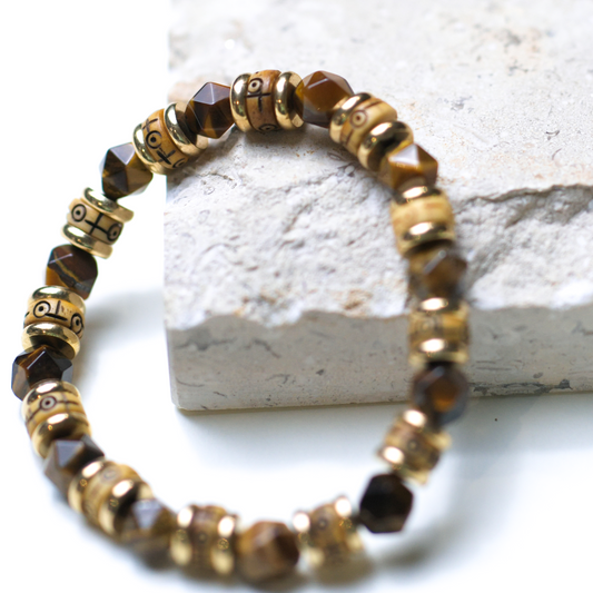 Tiger Eye & Carved Bone Prosperity Bracelet